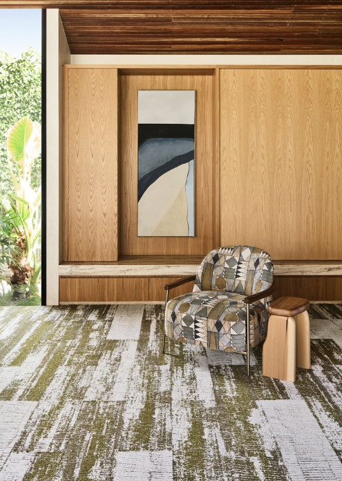 Designed as a carpet plank system, Country to Coast supports a range of installation methods including ashlar, herringbone, brick and basketweave, allowing designers to influence movement, direction and spatial definition.