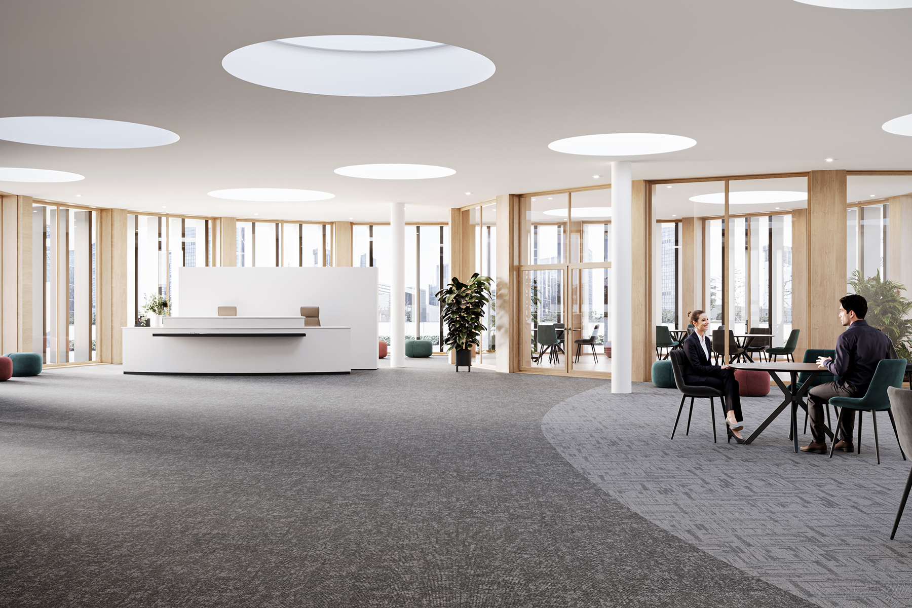 Together, Division and Unity enable designers to create flooring layouts that move between contrast and cohesion, supporting both zoning and continuity within commercial environments.