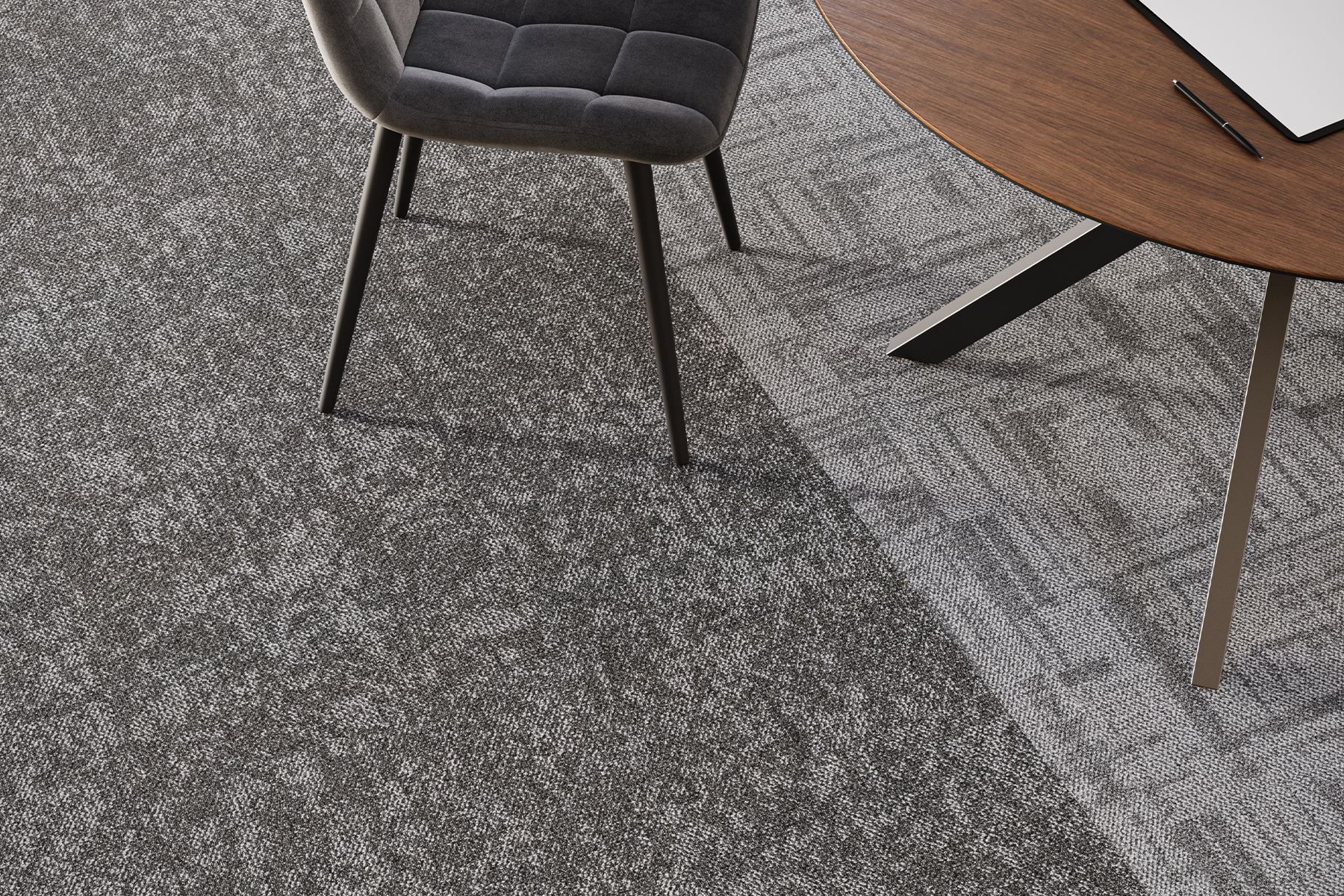 Division delivers a bold expression of contrast and structure through geometric design, defining zones with precision and enhancing spatial clarity in high-traffic areas. Its clean lines and structured patterns create dynamic visual energy while maintaining cohesion across open-plan environments.