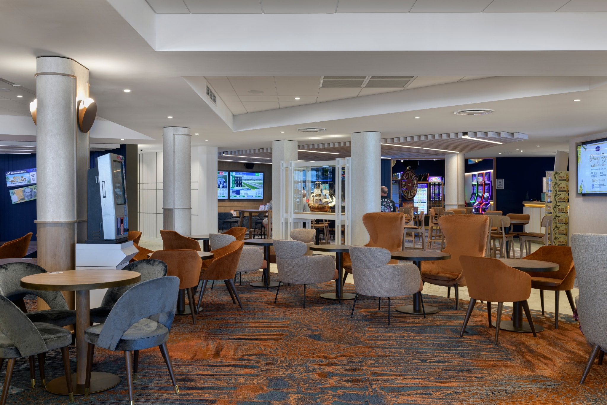 MARINA MEETS MINDFUL DESIGN | A fresh look for the Hervey Bay Boat Club with a complete transformation of the venue, through a multi-stage approach, featuring a new café, sports bar and cocktail lounge. Nestled amongst a coastal Australian landscape, the palette pays homage to the natural beauty of its surrounding environment. Designed in collaboration with the Signature Studio team, the Axminster carpets thoughtfully ground the interior spaces with its earthy, ochre tones in the café to the inky blues featured in the bar, reflecting the transition from inland topography to the ocean in Hervey Bay. Movement and texture were also essential and incorporated through the pattern elements that reflect ripples or currents adding to the overall ambience and feeling of wellbeing.