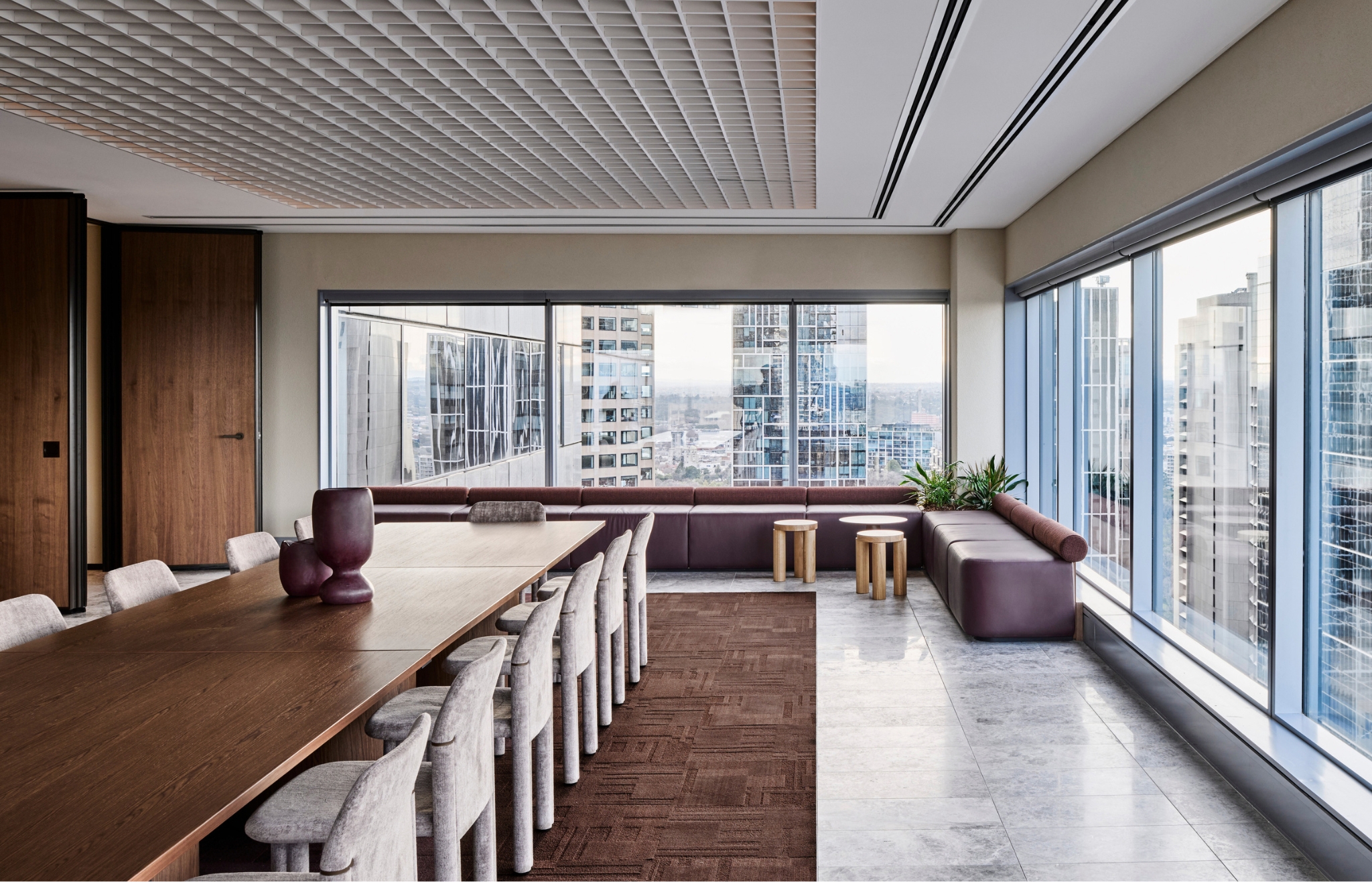 JLL’s new Melbourne headquarters at 101 Collins Street features colours from the Vivid 202 carpet tile collection in Coffee Scrub and Llama Drama. These warm, earthy tones complement the office’s blend of modern design with historical influences, nodding to Melbourne’s textile industry past. The rich, textural flooring enhances both the functional and aesthetic elements of the workspace, providing a beautiful transition between the refined finishes of Collins Street and the industrial spirit of Flinders Lane.