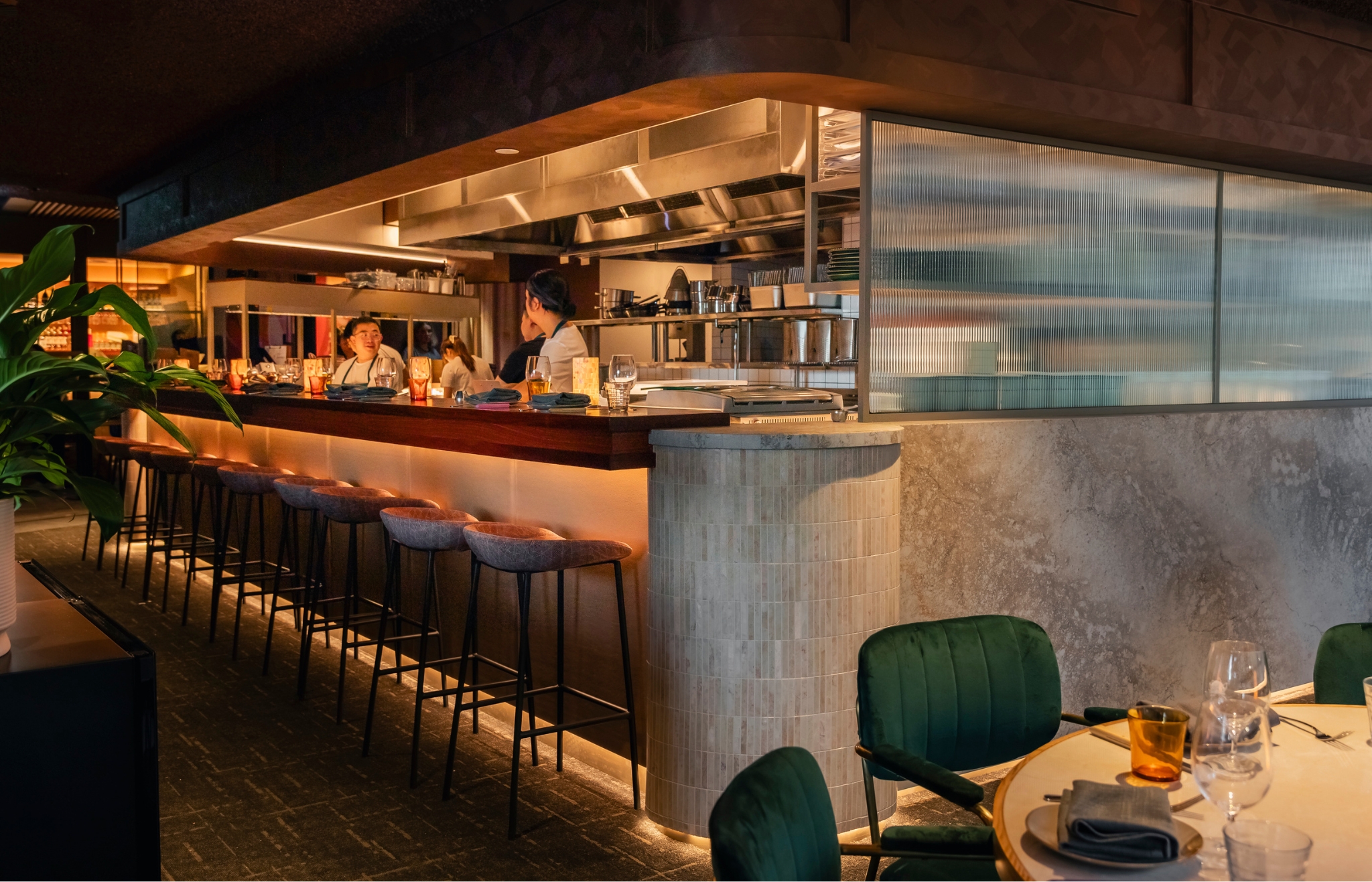 Designed by Kathryn Ashley Studios, the fit-out of Penelope’s achieves a perfect balance of style and functionality. To enhance this sophisticated space, Signature Floors’ Strikeout II Carpet Tiles were selected, providing a durable flooring solution that complements the restaurant’s elegant ambiance.