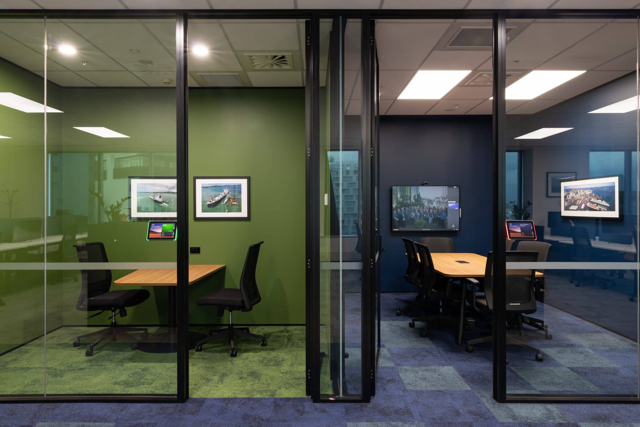 Playful yet sophisticated colour-blocking akin to shipping containers with curved walls echoing a ship’s structure injects personality and practical zoning and wayfinding to the space, creating an innovative hub, embracing creativity and distinction.
