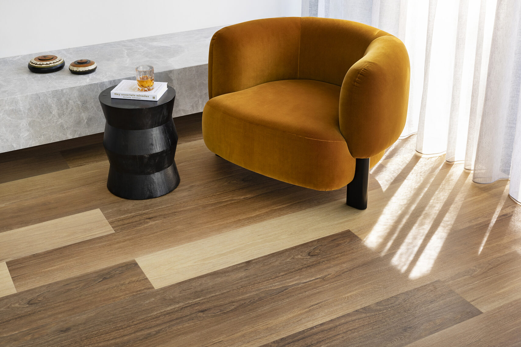 Available at Carpet Court only, the Retreat range creates a restorative atmosphere with 10 natural timber-look tones with an embossed finish. Its 7mm plank construction, 0.5mm scratch and stain-resistant wear layer and Liteback® backing supports effortless living. With P4 slip resistance, GreenTag® GreenRate Level A certification and a lifetime warranty, Retreat brings lasting tranquillity to your home.
